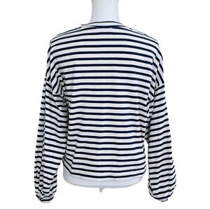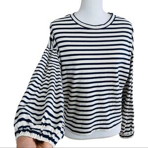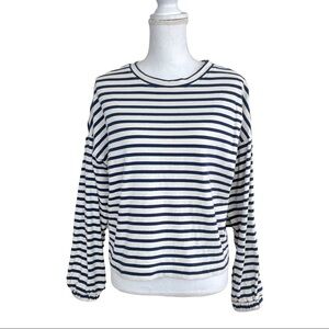 Crew neck, Cream and navy blue stripes, Long sleeve with elastic cuffs, 100% cotton