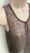 This stunning 100% silk tank top features a smoky gray-lavender tone with intricate Art Deco-style beadwork and sequins throughout. The sheer overlay is lightweight and elegant, with a lined front and sheer back/sides, a keyhole front detail, and chic side slits.
