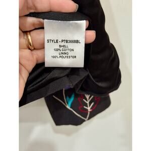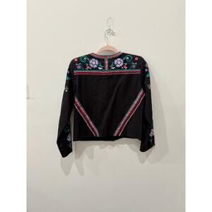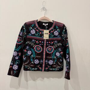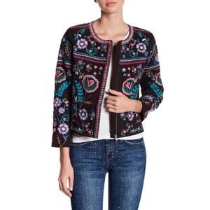 Parker Embroidered Floral Zip Up Round Neck Crop Jacket Black Multi Womens Small