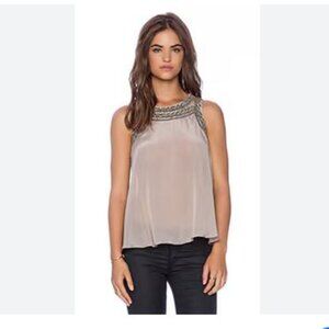 Parker Estee Taupe Beaded Silk Tank Top, S