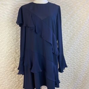 Go fun or serious in this sassy mini! Parker never disappoints in quality and the asymmetric ruffles add a little extra wow!