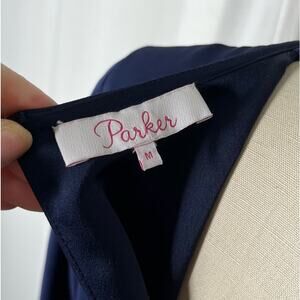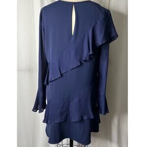 Parker Evony Navy Silk Long Sleeve Ruffle Dress Size Medium