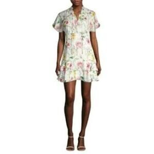 Parker Fillipa 100% Silk Floral Ruffle Mini Faux Dress Size 10