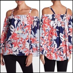 Parker Floral Cold Shoulder Gardenia Blouse Top