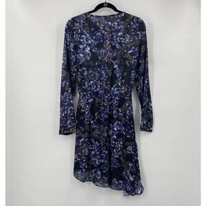Parker Floral Dress Fit & Flare Faux Wrap Mini Dark Bluebonnet NEW Womens Small