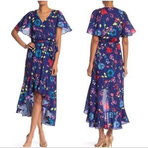 Parker Floral Ruffle High Low Midi Dress Size Small