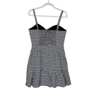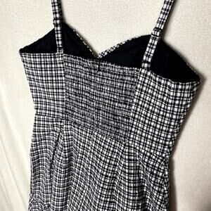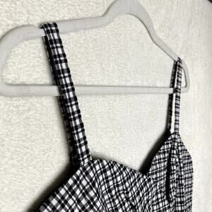 Parker Gingham Plaid Smocked Fit & Flare Mini Cocktail Dress Black White Medium