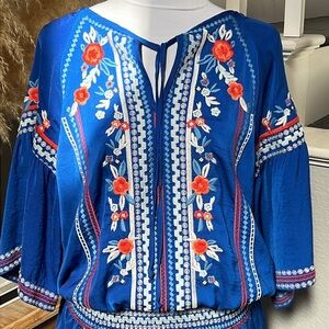 Parker Giselle Blue Floral Embroidered Tunic/Mini Dress Size Medium