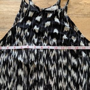 100% Silk, slight high-lo cut, high neck with small button fastener on back