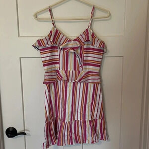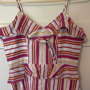Parker - Isadora Striped Peplum Skater Dress - Size 4 - Pink/Yellow/White - GUC!