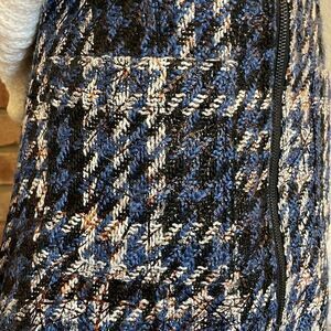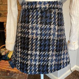 Parker Krista Tweed Blue Plaid Mini Zip Up Pencil Skirt