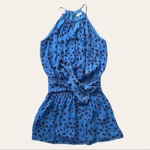 Parker Larissa Halter Silk Chrystie Cornflower Blue Ditsy Floral Mini Dress