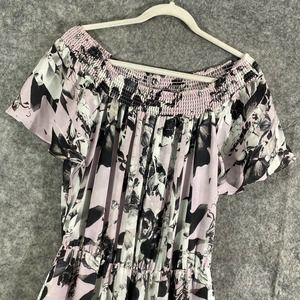 Parker Maxi Dress Small Lilac Purple Floral Print Off The Shoulder Short Sleeve