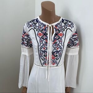 Parker Milly ivory embroidered long sleeves mini dress in size X small