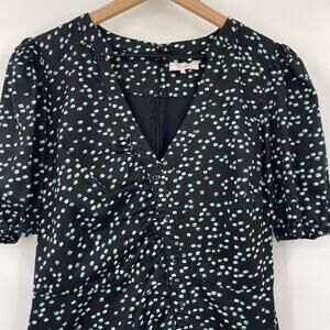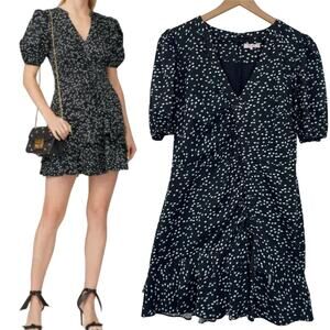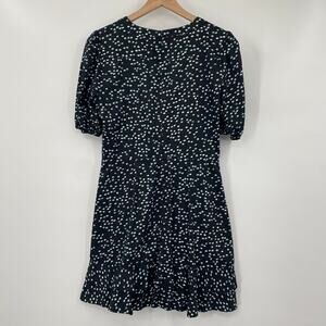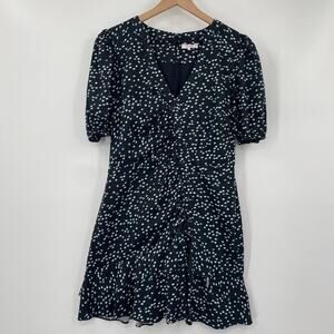 Parker Minna Dress Asymmetrical Button Front Cotton Dotted Print Black Womens 10