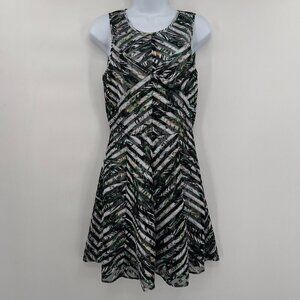 Parker Mirabella Tree Print Fit And Flare Round Neckline Sleeveless Mini Dress S Excellent Pre-Owned Condition. Open To Offers