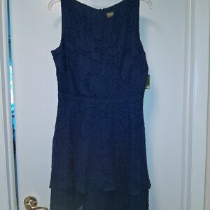 Parker Navy Blue Embossed Floral Sleeveless Dress Sz 12 NWT