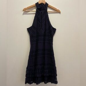 Parker New York Lace Halter Cut Out Ruffle Mini Dress in Navy Size 0