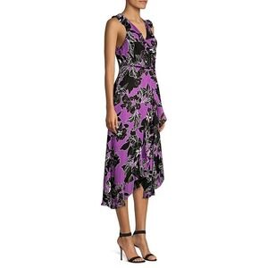 Parker New York NWT Loreena Silk Blend Wrap Dress Purple Black Floral Size 2