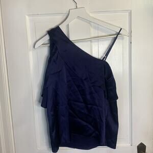 Parker Night Blue Ruffled Silk Charmeuse One Shoulder Top New with Tag Size XS