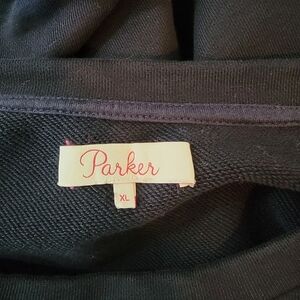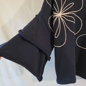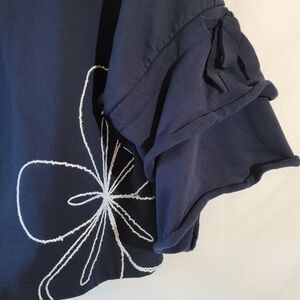 Parker Oamara Navy Blue Crewneck Floral Topstitch Cotton Blouse XL Artsy Boho