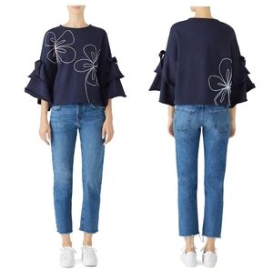 Exaggerated floral embroidery, dainty bows, and tiered ruffles sweeten the casual-cool silhouette of this drop-shoulder Parker Sweatshirt.