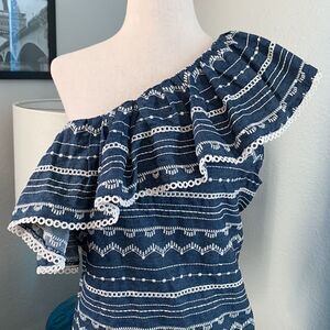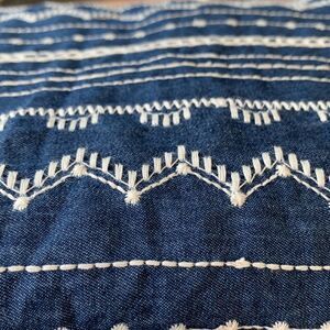 This dress is really adorable in person, so unique- denim colored blue with off white threaded designs