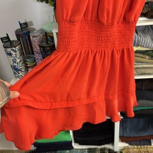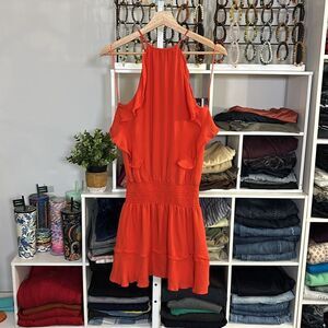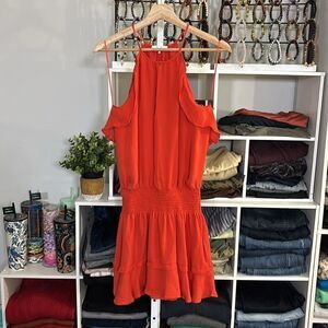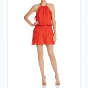 Parker Orange Halter Sundress Mini 100% silk smocked waist