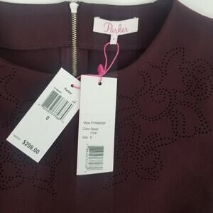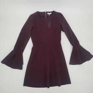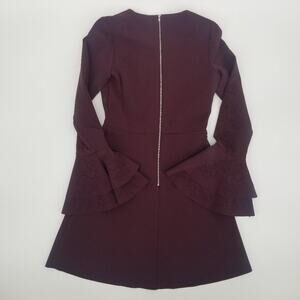 Parker Orlando Bell Sleeve Dress 0 Laser Cut Out Floral Mini Cocktail Burgundy