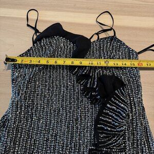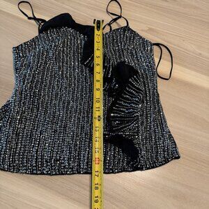 Parker Parker Justine Sequin Ruffled Frill Black Silver Camisole Top X-Small XS