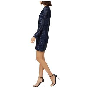 Blue sequins (94% Polyester, 6% Spandex). Sheath. Long sleeves. V-neckline. Hidden back zipper with hook-and-eye closure. Fully lined. 34" from shoulder to hemline. Imported.
