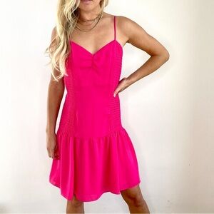 Parker Pink Bright Rose Smocked Side Dress with a Ruffle hem. Hits above the knee.