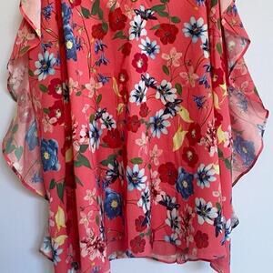 Parker Pink Floral Print Keyhole Ruffle Tank Top - M