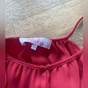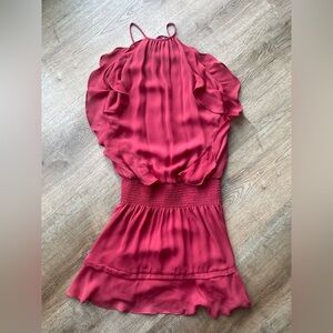 Parker Pink/Red Silk Halter Mini Dress XS Ruffle Tiered Cocktail Y2K retro
