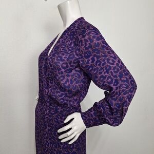 Parker Purple 100% Silk Leopard Print Faux Wrap Mini Dress Size S