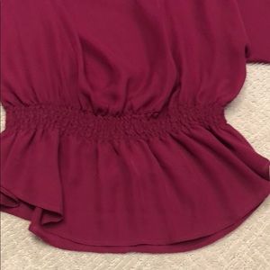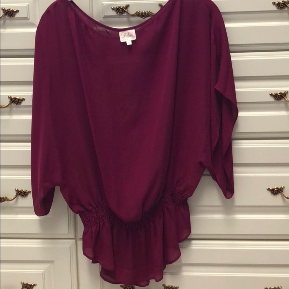 FIRM price. Size XS Parker Blouse in Raspberry/pinkish purple color in good used condition showing some slight pulls in silk in back when its layed flat and stretched out. Gathered and smocked waist with flowy top part and dolman/batwing style sleeves. Approximate length when stretched out is 29”. Fall Winter Spring Summer Holiday Resort Vacation Going out styles Ulla Johnson Alice and Olivia ramy brook rebecca Taylor Joie Veronica beard Isabel marant sezane