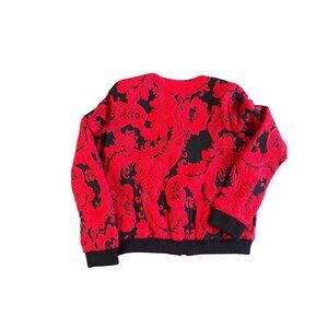 Parker Red & Black Floral Embroidered Zip-Up Jacket Womens Size M MSRP $352