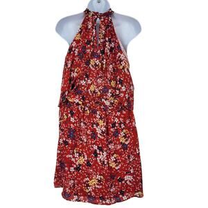 Parker Red Scilla Floral Print Cold Shoulder Halter Neck Dress Size Small New