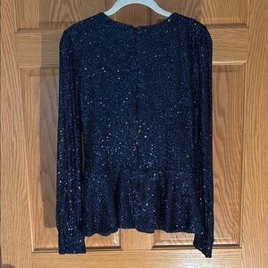 Parker Rent the Runway Elegant Navy Sequin Wrap Top Large