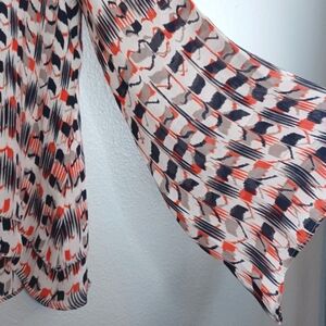 Parker Rita 100% Silk Bell Sleeve Flowy Abstract Artsy Blouse.