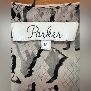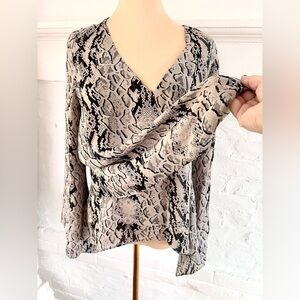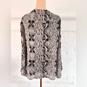 Parker Rita Snakenet Silk Blouse Greige Black Python Snake Print Bell Sleeve