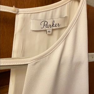 White Parker dress with lace-up details on the side & V-neck & back cutout design. Size XS but fits more like a S.
