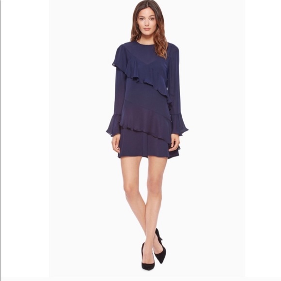 Parker ruffle dress in navy. Size tag missing but fits like a Parker M or 6.