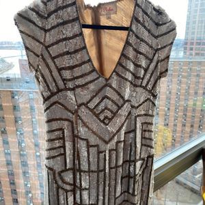 Gorgeous sequin and beaded mini dress from Parker. Has cream, gold, white, and chrome beads and sequins. Has a v neckline. Worn once, in perfect condition!
