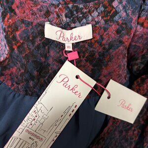 Parker Serpentina Snakeskin Print Silk Dress XS Long Sleeve Ruffle Hem