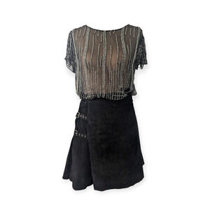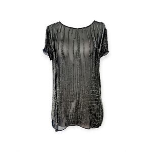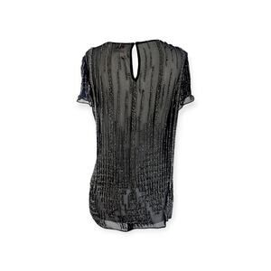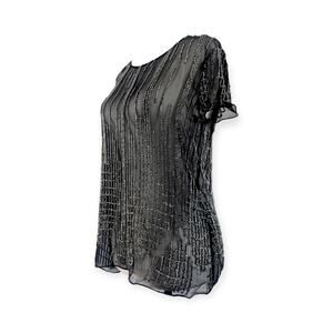 Parker Sheer Beaded Scoop Neck Short Sleeve Blouse