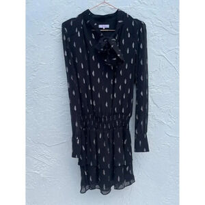 Parker Shelli Womens Long-Sleeve Ruffled Silk Blouson Mini Dress Black Sz XS