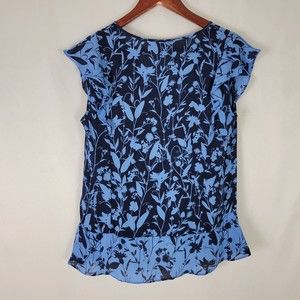 Parker Shirt Womens Extra Small Popover Top Blue Silk Floral Short Cap Sleeve