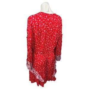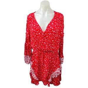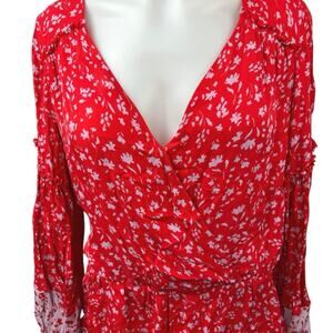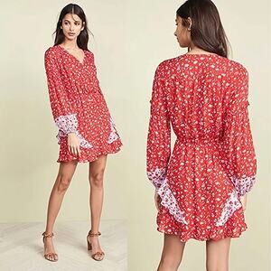 Parker Shona Silk Red Floral Ruffle V-neck Long Sleeve Wrap Mini A-line Dress L