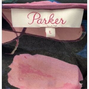 Parker Silk Blend Blouse L Abstract Floral Print Boho Luxe Button Front large